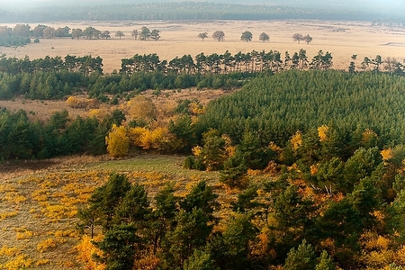 Afgelopen vrijdag een lang vooraf geplande, maar door omstandigheden als het weer jarenlang uitgestelde, vlucht over een herfstige Veluwe gemaakt. Doel: herfstkleuren in de bossen in beeld brengen voor twee Nationale Parken. Om te mogen vliegen moet er een minimaal zicht van 5 kilometer zijn en het scheelde niet veel of de hoge luchtvochtigheid had ertoe geleid dat ik ook dit jaar weer het hoogtepunt van de verkleuring zou mislopen. Het late namiddaglicht zorgde echter voor prachtige lange schaduwen en warme kleuren over een adembenemend landschap. Tot zover klinkt het allemaal te mooi om waar te zijn. Dat valt tegen. Ik heb enige hoogtevrees, of liever een gezond respect voor hoogteverschillen.