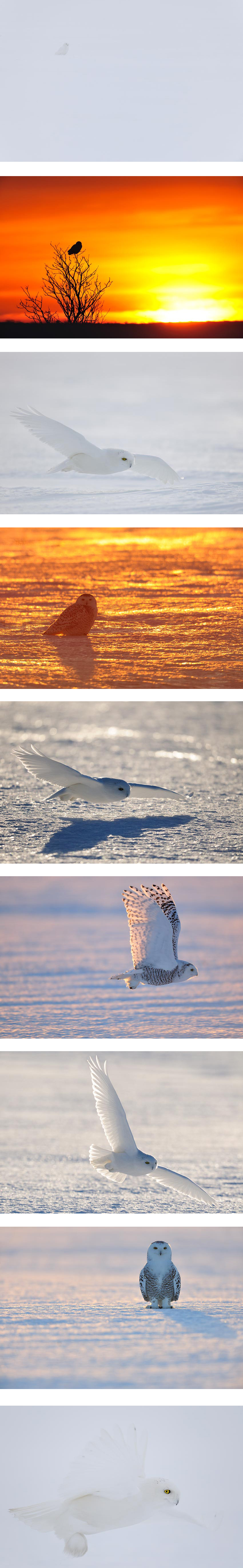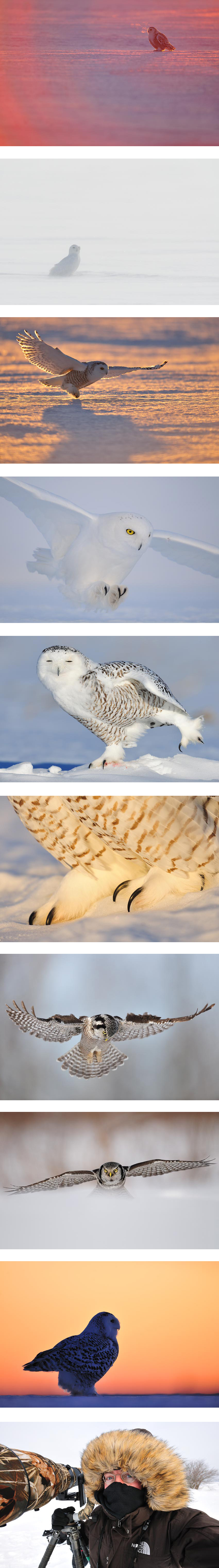 Alsof het hier nog niet koud genoeg was, ben ik onlangs opnieuw het noorden gaan opzoeken. Deze keer aan de andere kant van de grote plas, in Canada! Ik had er maar één soort voor ogen, maar wat voor één...De Snowy owl ofte sneeuwuil, die in het zuiden van Canada overwintert en dan relatief makkelijk bereikbaar is, in tegenstelling tot de zomer, wanneer ze in de eindeloze toendra van het hoge noorden broeden. De winters ginder zijn er van een heel ander kaliber dan hier, dus was het beschermen geblazen. Want bij dagenlang zoeken en stilzitten bij -20°C met een harde sneeuwwind heb je de allerwarmste uitrusting nodig, frostbite ligt steeds op de loer! Maar de koude kon de pret niet bederven, integendeel! De arctische sfeer en de magnifieke sneeuwuilen zorgden voor een bijzonder en onvergetelijk spektakel. Ik genoot ervan met volle teugen! Een Sperweruiltje was een leuke bonussoort.