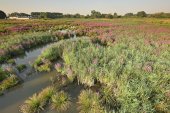 Beheerswerken op het Hedwige-Prosperschor waarbij de broedvogeleilanden worden gemaaid met een amfibische maaimachine.