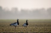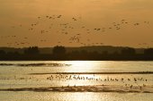 Een grote groep brandganzen rust op een plaat in het Nationaal Park Lauwersmeer
