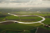 Luchtfoto van graslanden met verkavelingspatroon in de provincie Groningen. Een systeem van sloten draagt zorgvoor een goede ontwatering van de graslanden.
