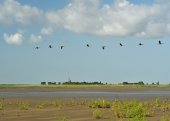 Beheerswerken op het Hedwige-Prosperschor waarbij de broedvogeleilanden worden gemaaid met een amfibische maaimachine.