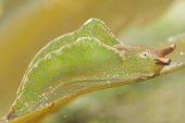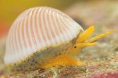 Het water heeft een aantal mooie patronen achtergelaten in het aangespoelde materiaal. Dat bestaat een boel zwart en kleine schelpjes.