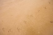 Pootafdrukken op slibafzettingen van een recente overstroming van de Dijle. Aan de andere oever is afkalving te zien.